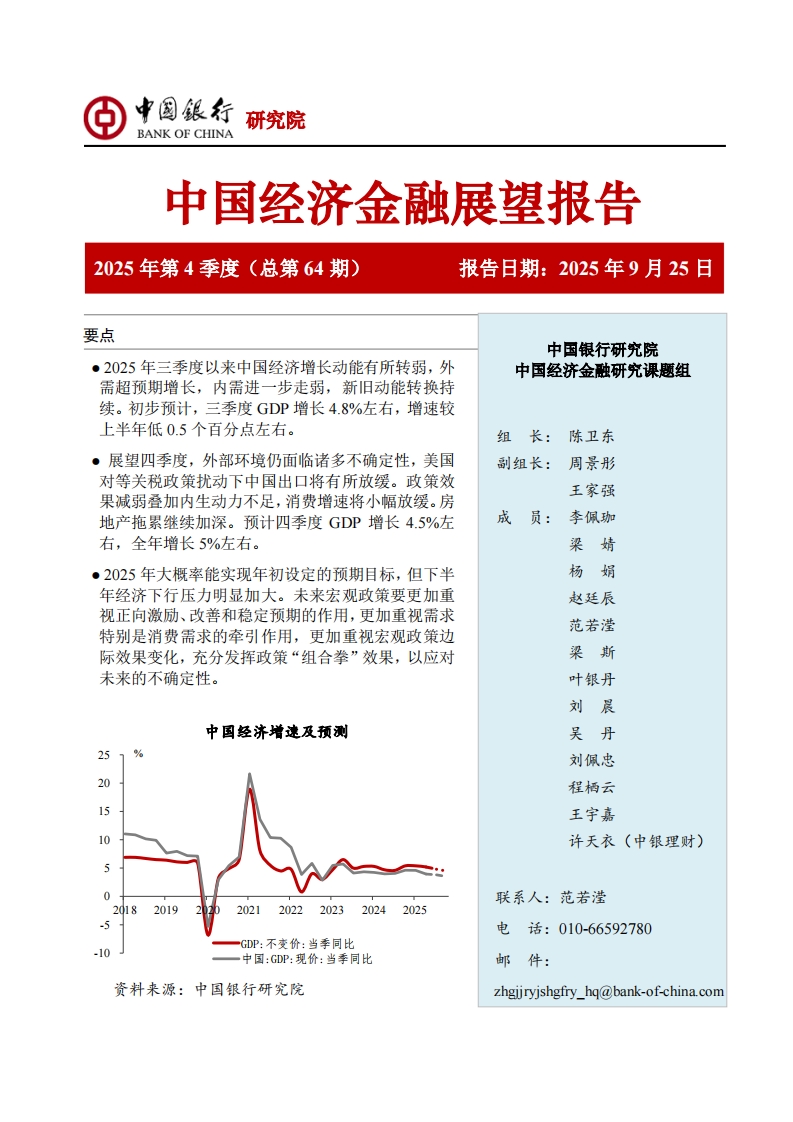 中國(guó)銀行中國(guó)經(jīng)濟(jì)金融展望報(bào)告(2025年第4季度):增長(zhǎng)動(dòng)能有所轉(zhuǎn)弱,需加大政策力度以應(yīng)對(duì)未來(lái)不確定性