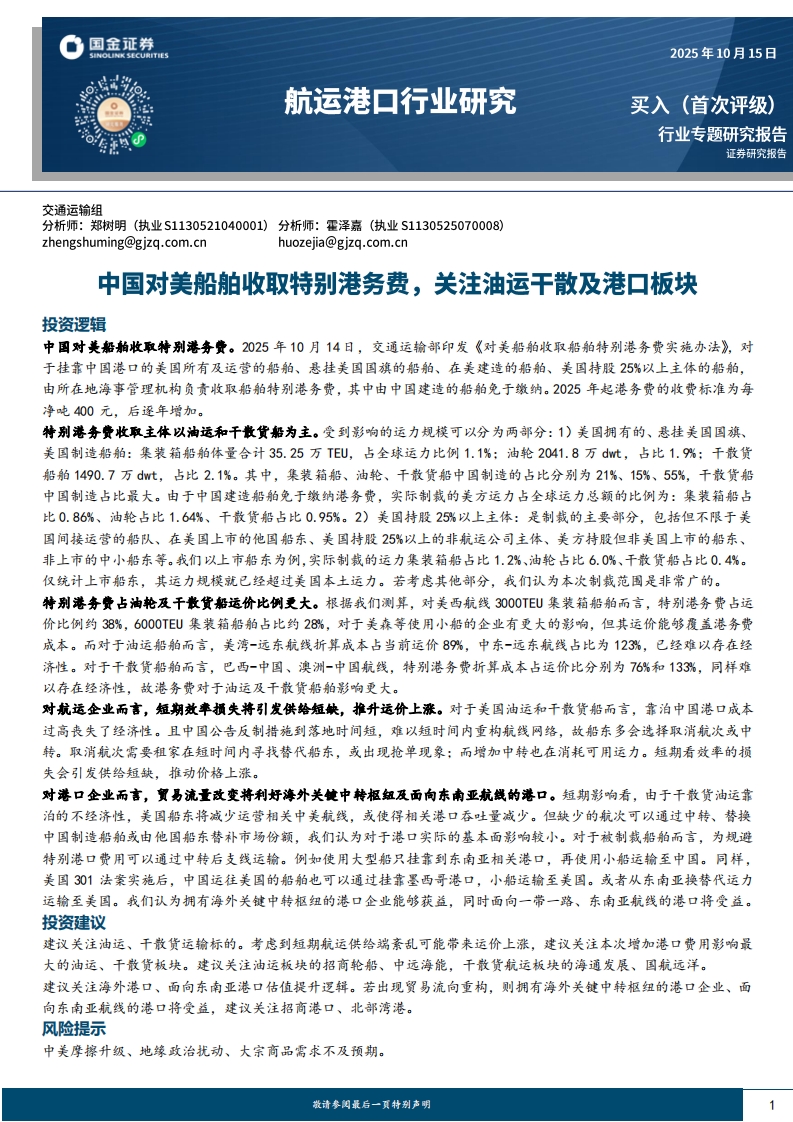 2025-10-17-國(guó)金證券--航運(yùn)港口行業(yè)研究:中國(guó)對(duì)美船舶收取特別港務(wù)費(fèi),關(guān)注油運(yùn)干散及港口板塊