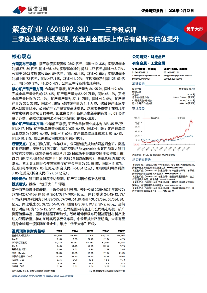 2025-10-22-國信證券-紫金礦業(yè)-三季報點評:三季度業(yè)績表現(xiàn)亮眼,紫金黃金國際上市后有望帶來估值提升