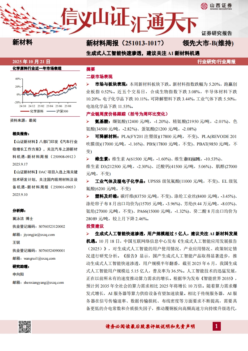 2025-10-21-山西證券--新材料行業(yè)周報:生成式人工智能快速滲透,建議關(guān)注AI新材料機遇