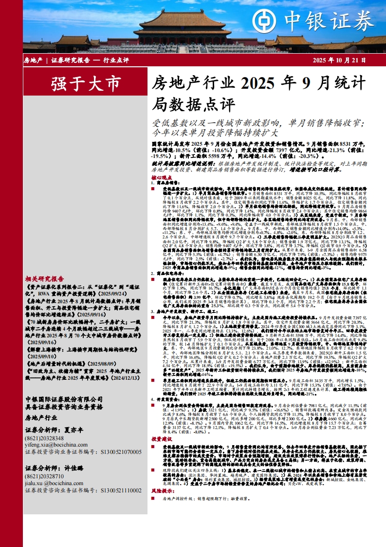 2025-10-21-中銀證券--房地產(chǎn)行業(yè)2025年9月統(tǒng)計(jì)局?jǐn)?shù)據(jù)點(diǎn)評:受低基數(shù)以及一線城市新政影響,單月銷售降幅收窄;今年以來單月投資降幅持續(xù)擴(kuò)大