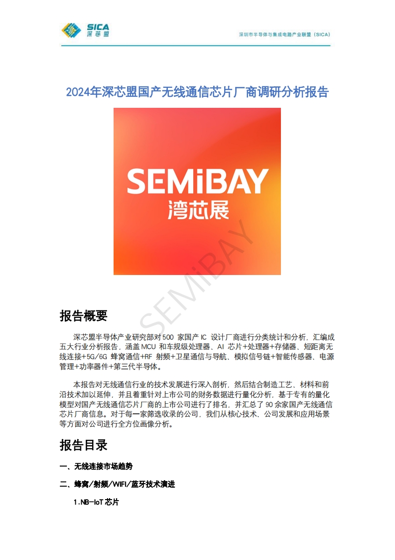 2024年深芯盟國產(chǎn)無線通信芯片廠商調(diào)研分析報(bào)告