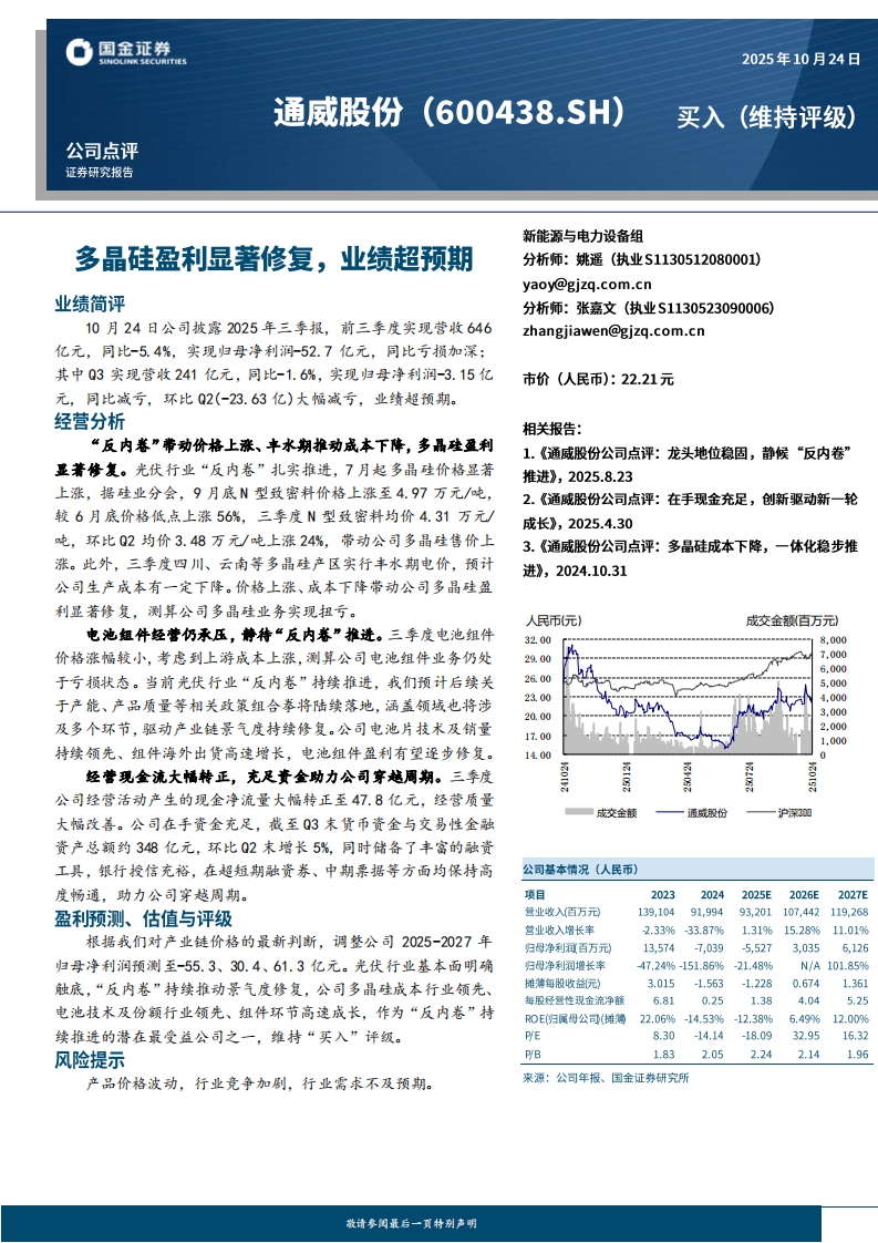 2025-10-26-國金證券-通威股份-多晶硅盈利顯著修復(fù),業(yè)績超預(yù)期
