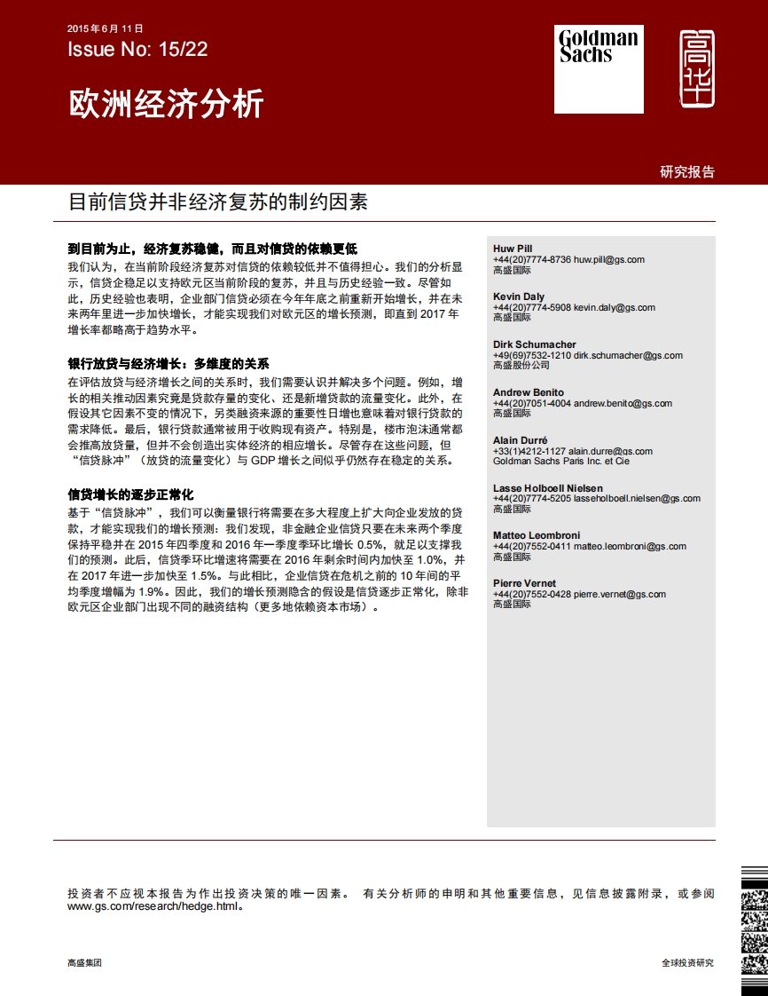 20150611-華為:-高盛高華證券-歐洲經(jīng)濟(jì)分析-目前信貸并非經(jīng)濟(jì)復(fù)蘇的制約因素-12頁