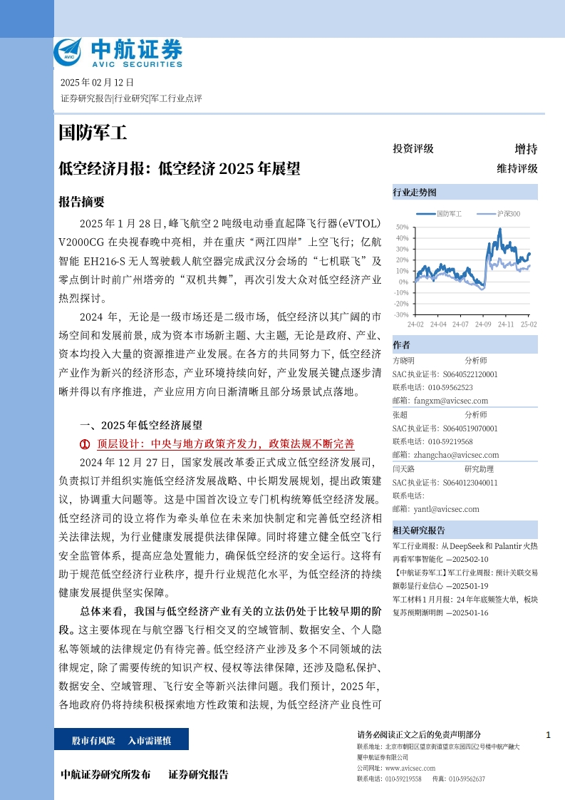 2025-02-13-中航證券--國防軍工:低空經(jīng)濟(jì)月報(bào):低空經(jīng)濟(jì)2025年展望